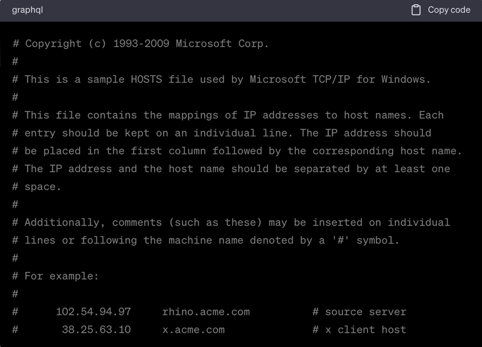 hosts файлының мазмұнының мысалы