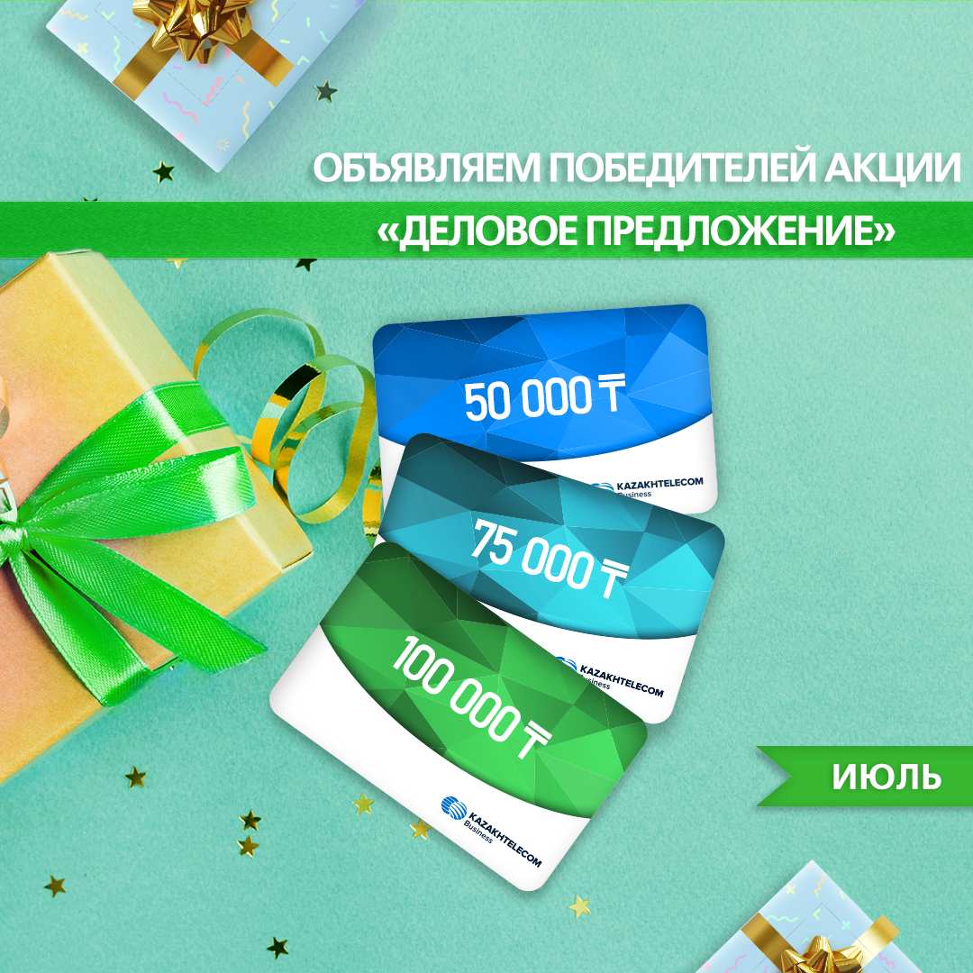 В начале июня 2020г компания АО «Казахтелеком» запустила уникальную Акцию «Деловое предложение» для индивидуальных предпринимателей и юридических лиц, с общим призовым фондом 10 миллионов тенге! Целью Акции послужила поддержка и развитие малого и среднего бизнеса в Казахстане.