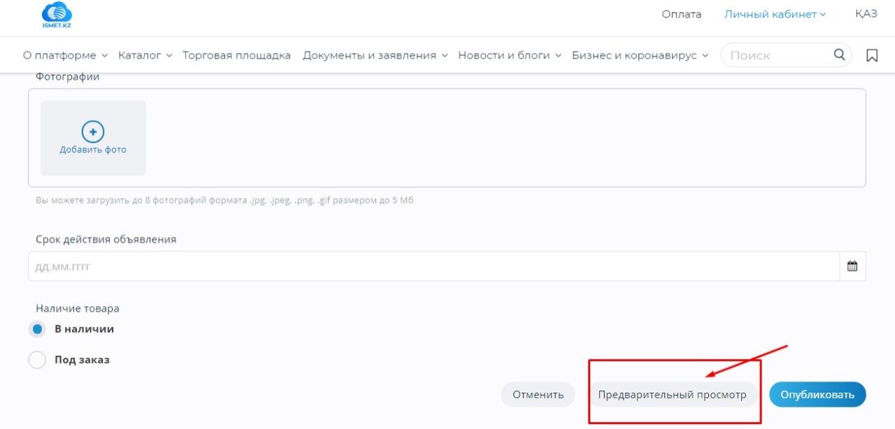 4. в поле Цена в тенге укажите стоимость предлагаемого Вами товара или услуги.