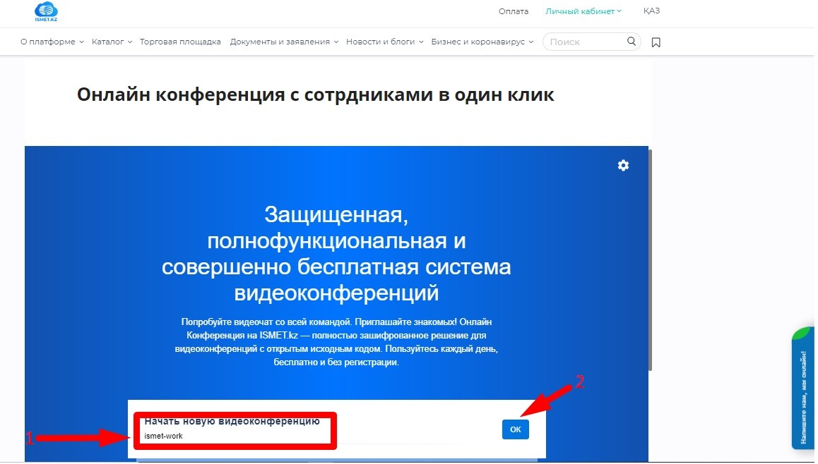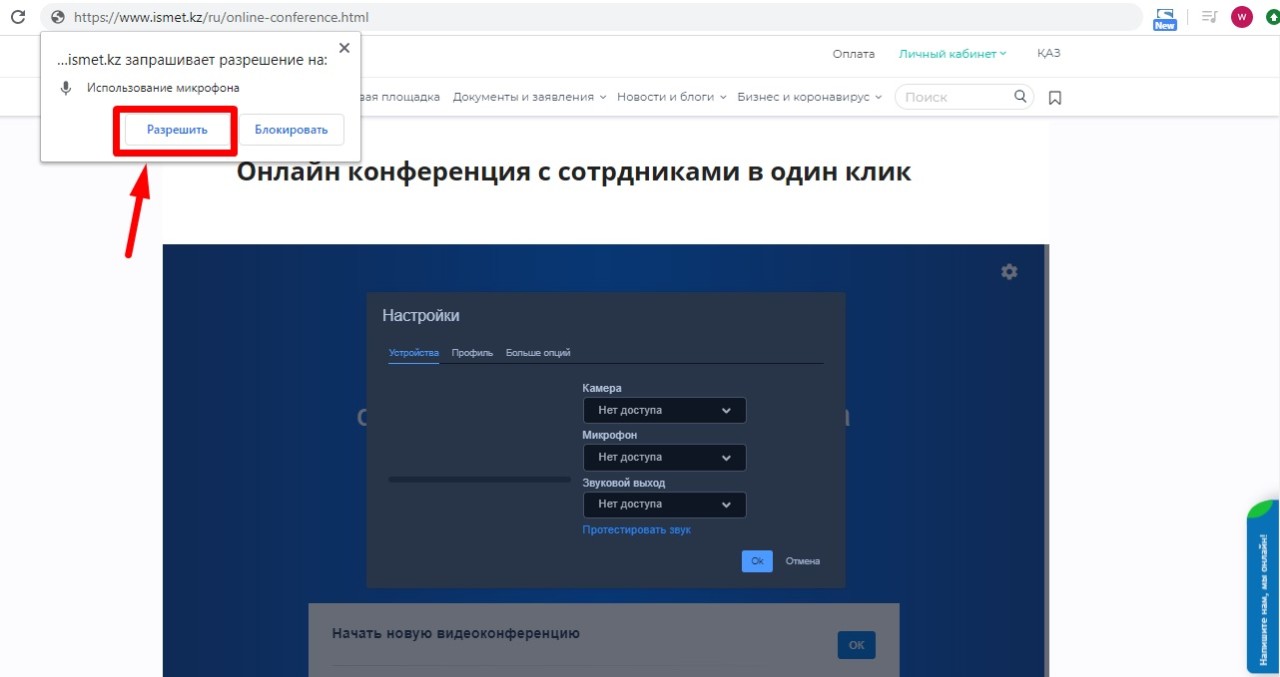 8. Получения ссылки на конференция для распространения доступа между сотрудниками, а также установка/смена пароля